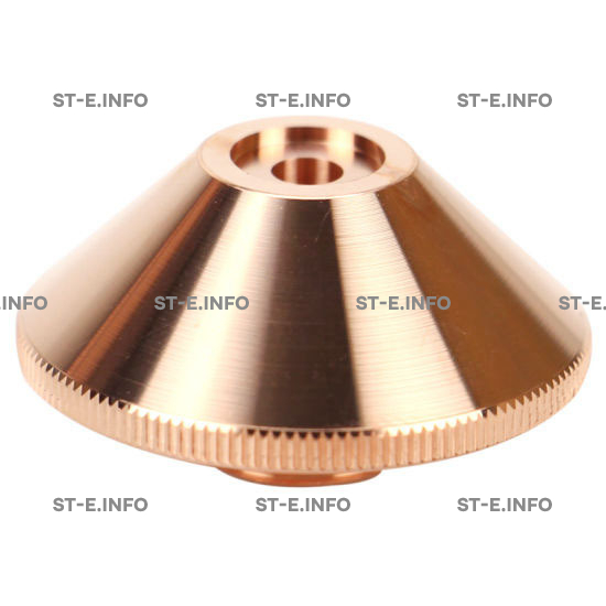 Данное сопло имеет форму усеченного конуса и диаметр отверстия на выходе. Произведено из меди с соблюдением необходимых стандартов качества, технических параметров изделий данного типа. В результате применения, сопло гарантирует сохранение расчётных параметров в течение длительного времени, вдобавок обеспечивает высокую мощность работы оборудования лазерной резки.